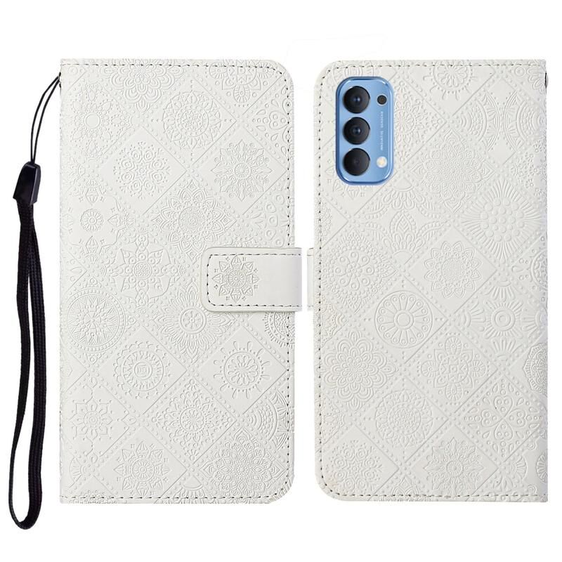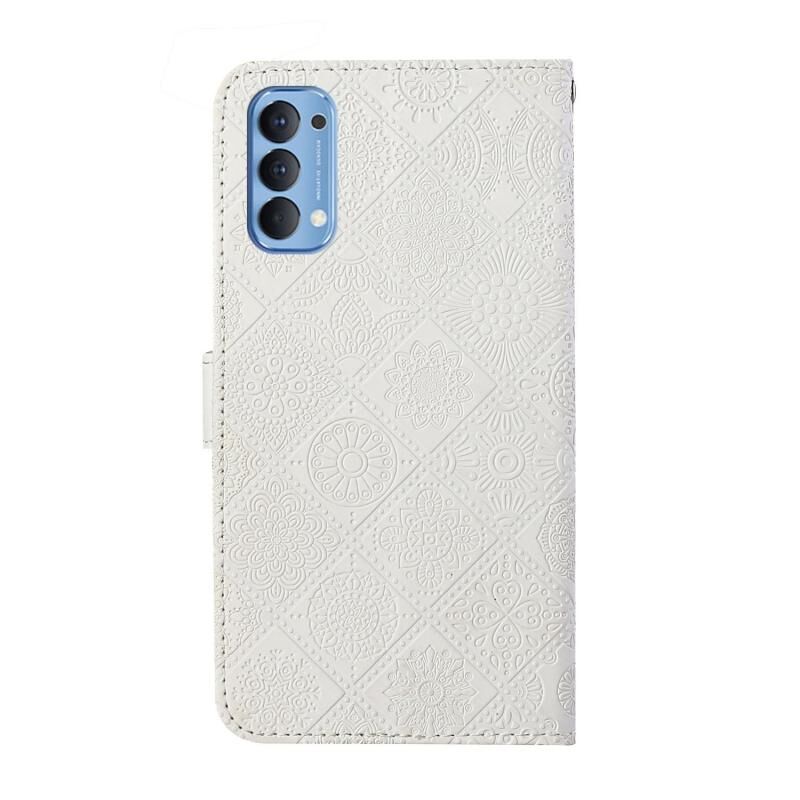 Για OPPO Reno4 Ethnic Style ανάγλυφο μοτίβο οριζόντια Flip δερμάτινη θήκη με κάτοχο & υποδοχές για κάρτες & πορτοφόλι & κορδόνι (Λευκό)