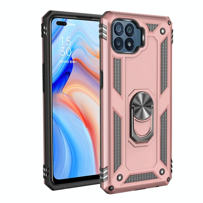 Θήκη προστασίας για OPPO Reno4 Lite, ανθεκτική σε κρούσεις, από TPU + PC με περιστρεφόμενη βάση 360 μοιρών (Ροζ χρυσός)