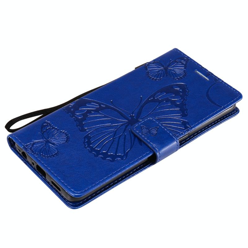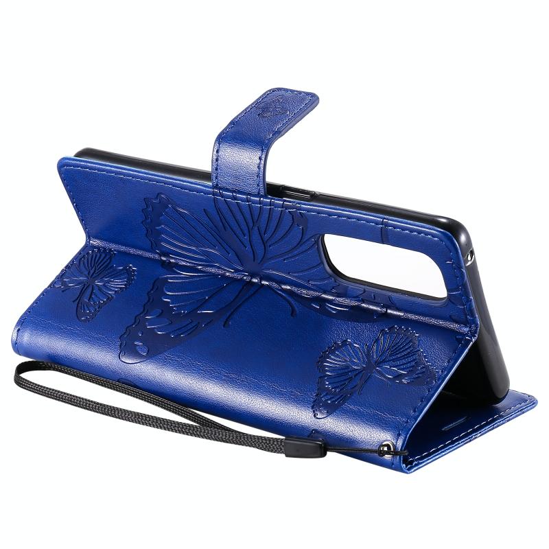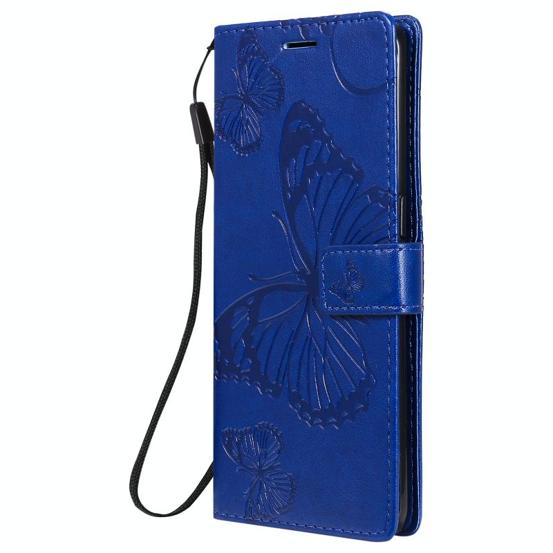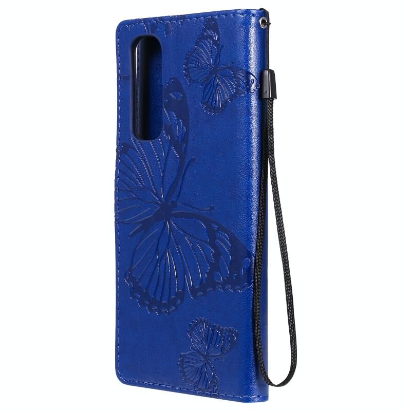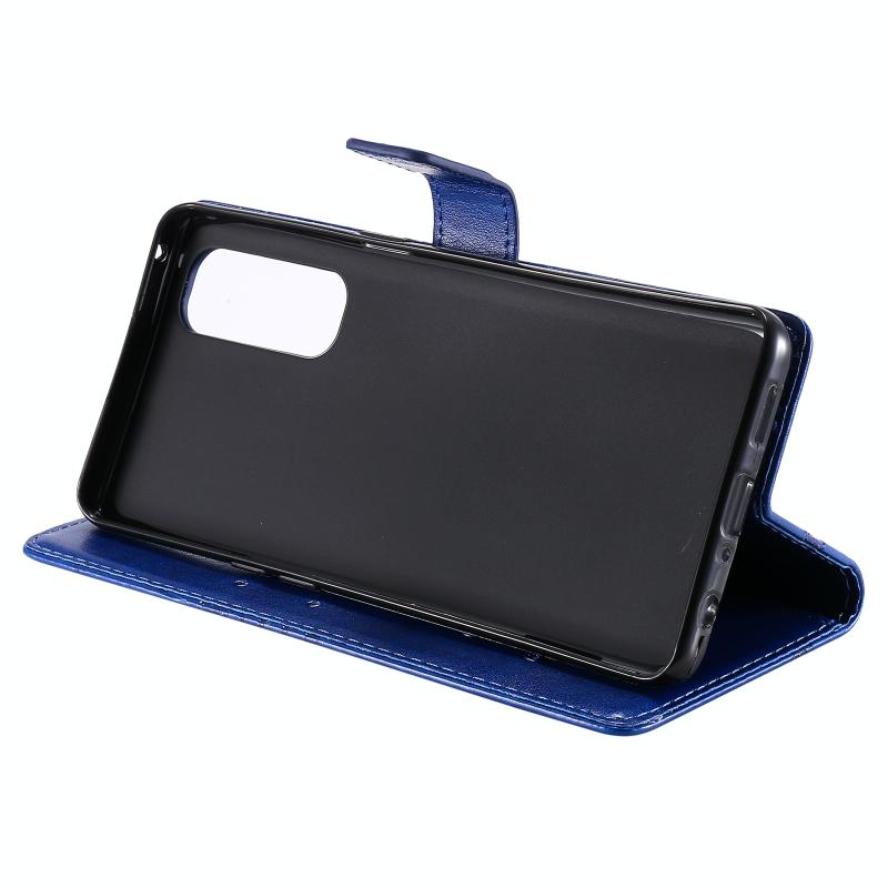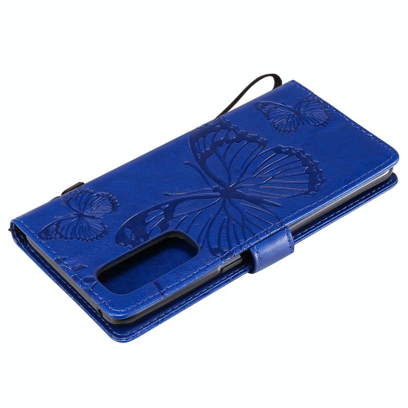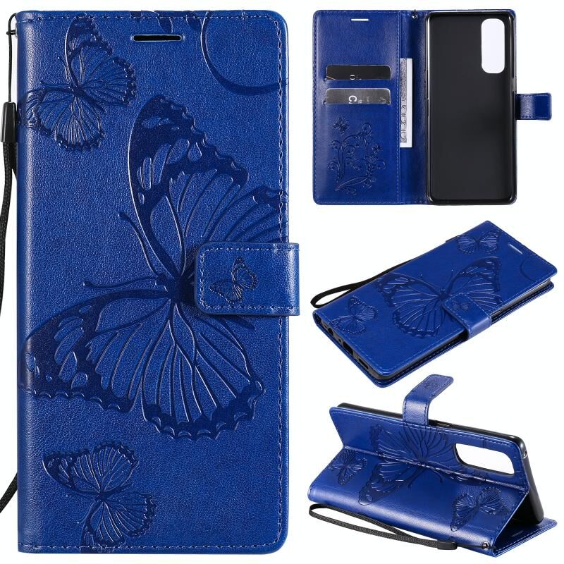 Θήκη δέρματος οριζόντιας αναδίπλωσης με ανάγλυφο σχέδιο 3D πεταλούδων για OPPO Reno4 Pro 4G, με βάση στήριξης & υποδοχή κάρτας & πορτοφόλι (Μπλε)