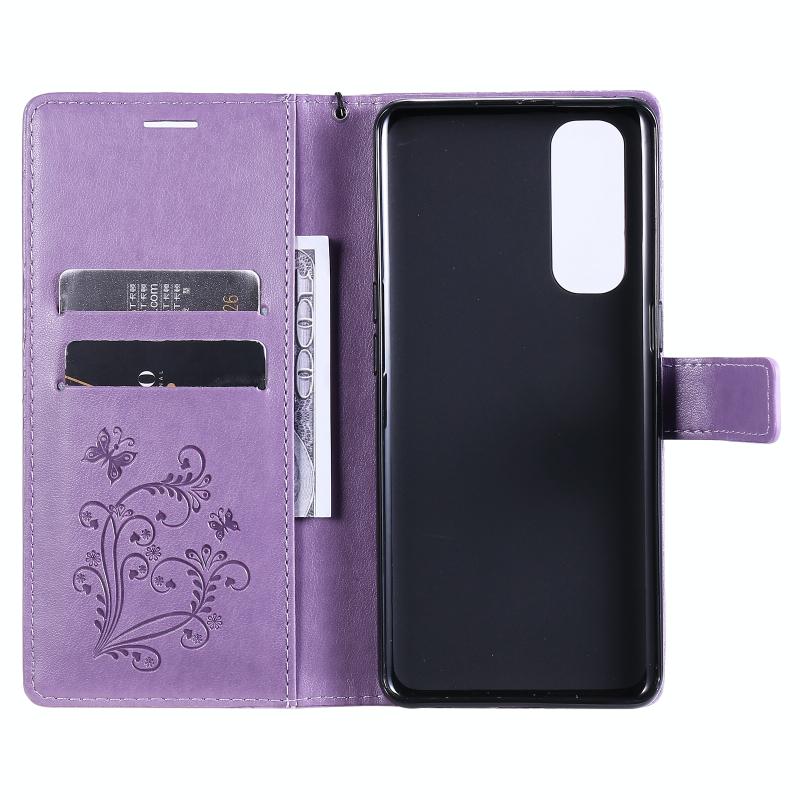 Θήκη δέρματος οριζόντιας αναδίπλωσης με ανάγλυφο σχέδιο 3D πεταλούδων για OPPO Reno4 Pro 4G, με βάση στήριξης & υποδοχή κάρτας & πορτοφόλι (Χρυσό Ρόδι)