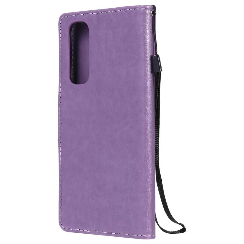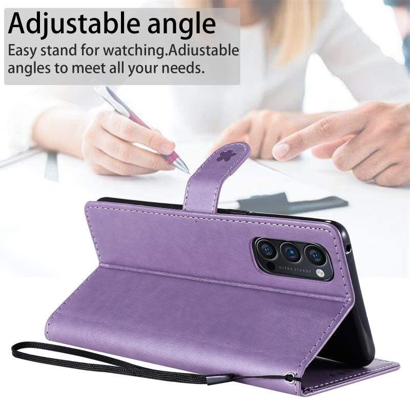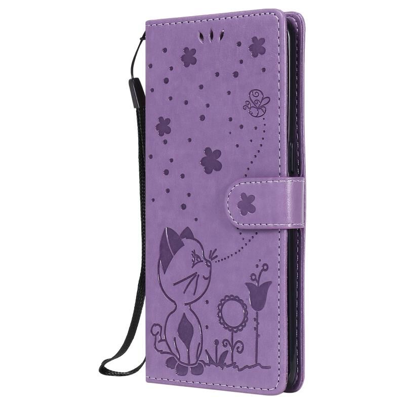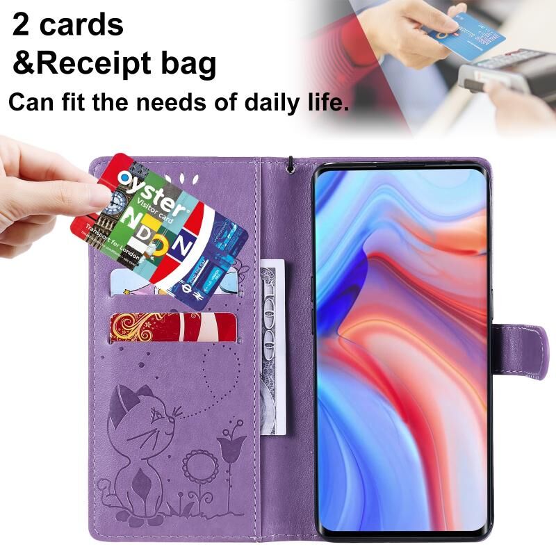 Θήκη δέρματος οριζόντιας αναδίπλωσης με ανάγλυφο σχέδιο Cat Bee, αντικραδασμική για OPPO Reno4 Pro 4G (Ινδική Έκδοση) με βάση & υποδοχές καρτών & πορτοφόλι (Μωβ)
