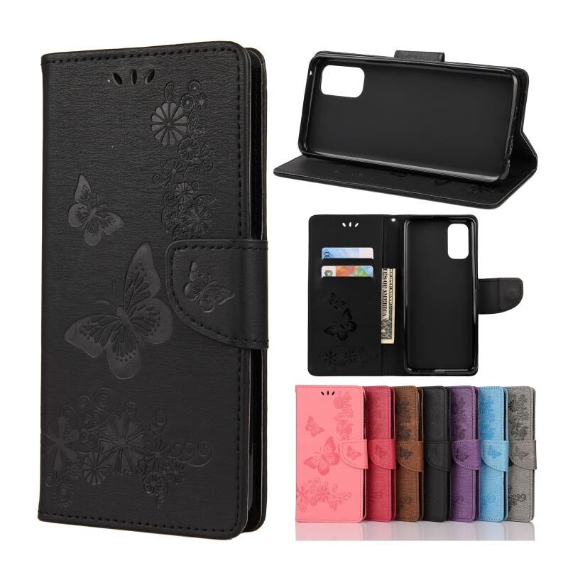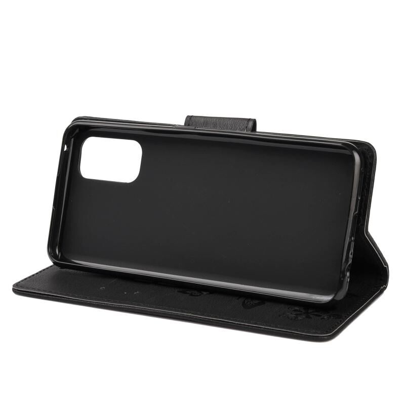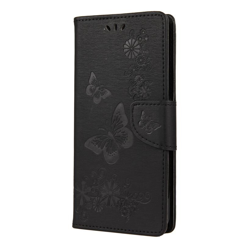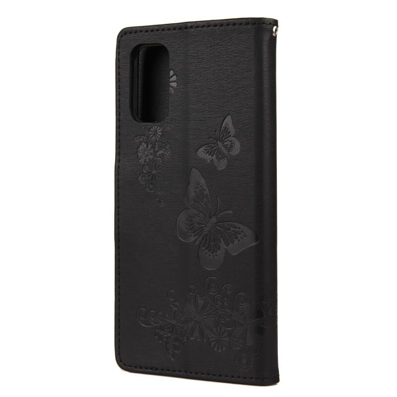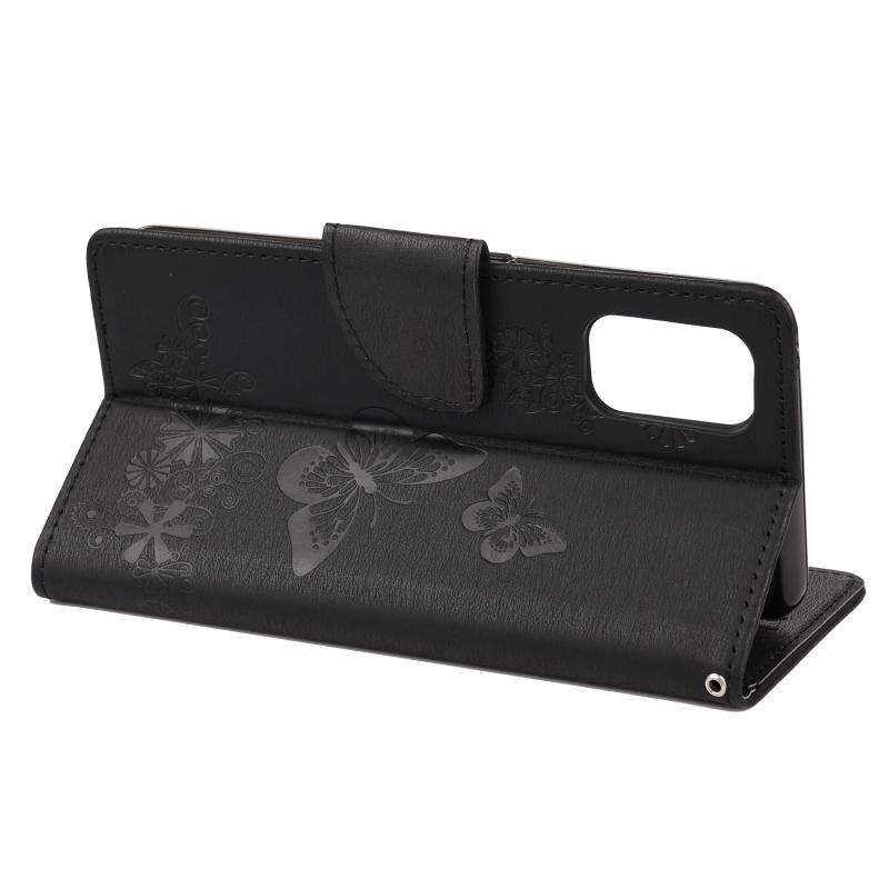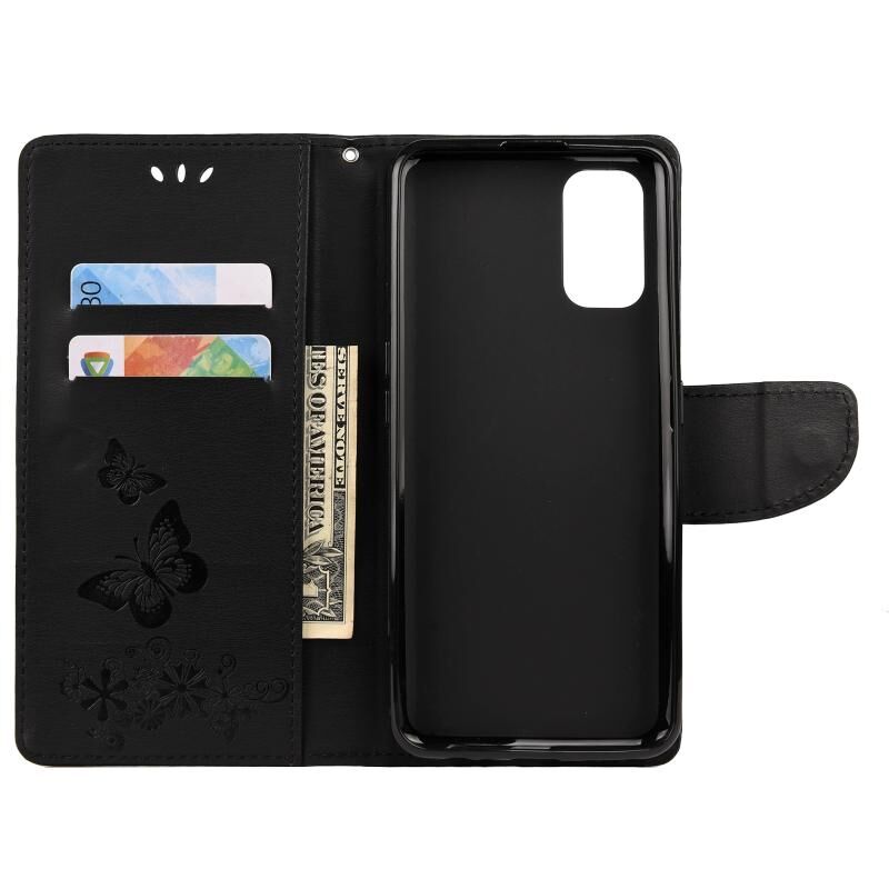 Θήκη δέρματος οριζόντιας αναδίπλωσης για OPPO Reno4 Pro 5G με ανάγλυφο σχέδιο πεταλούδων, με βάση στήριξης & υποδοχές καρτών & πορτοφόλι (Μαύρο)