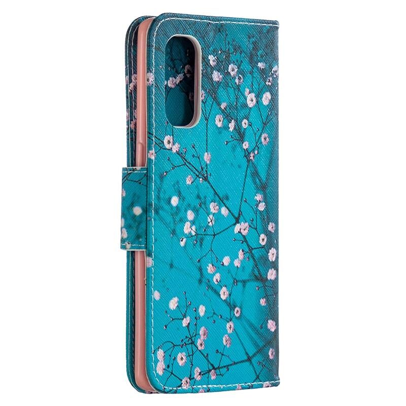 Θήκη δέρματος οριζόντιας αναδίπλωσης με σχέδιο πολύχρωμης ζωγραφικής για OPPO Reno4 Pro 5G με βάση στήριξης & υποδοχές καρτών & πορτοφόλι (Λουλούδι Δαμασκηνιάς)