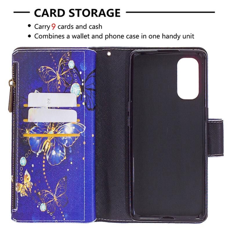 Θήκη δέρματος οριζόντιας αναδίπλωσης με φερμουάρ και σχέδιο πολύχρωμης ζωγραφικής για OPPO Reno4 Pro 5G με βάση στήριξης & υποδοχές καρτών & πορτοφόλι (Χρυσή Πεταλούδα)