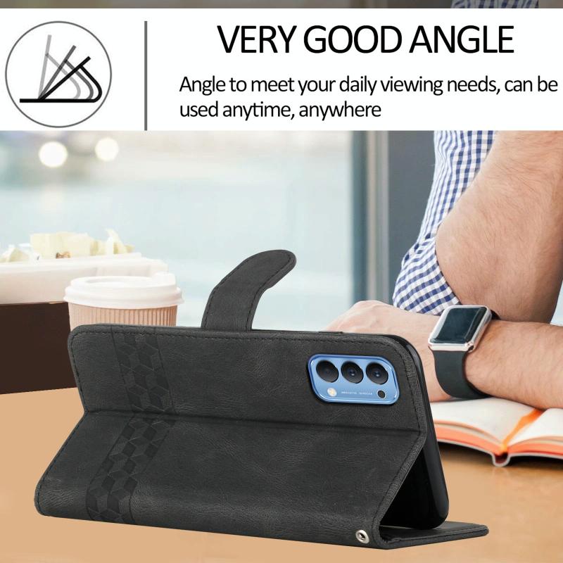 Θήκη τηλεφώνου από δέρμα με αναδιπλούμενο καπάκι για OPPO Reno4 Pro 5G, με υφή κυβικού δέρματος (Μαύρο)
