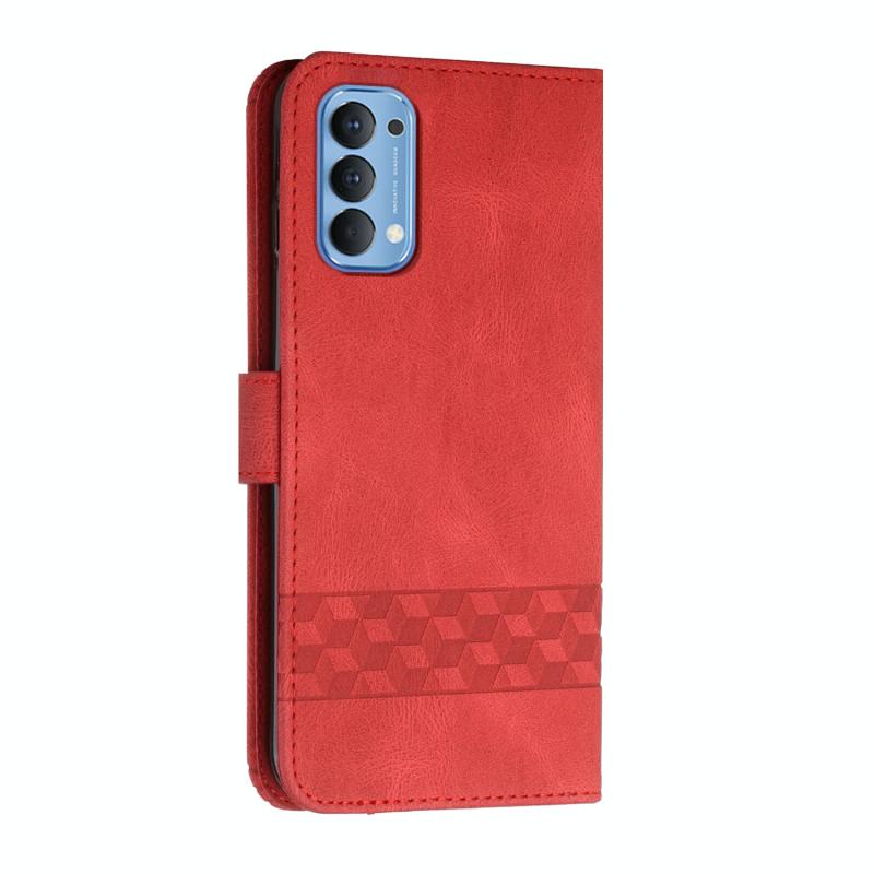For OPPO Reno4 Pro 5G Cubic Skin Feel Flip Leather Phone Case(Red)