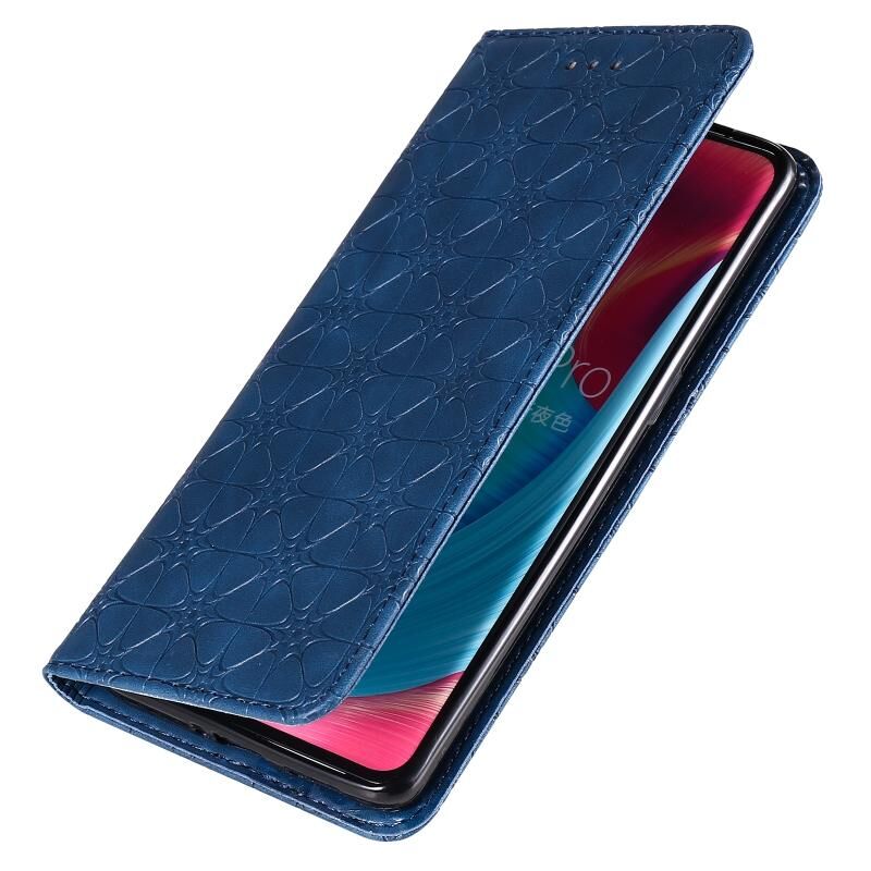 Θήκη δέρματος με μαγνητικό κλείσιμο, οριζόντια, με ανάγλυφο σχέδιο τυχερών λουλουδιών για OPPO Reno4 Pro 5G, με βάση στήριξης & θήκες καρτών (Σκούρο μπλε)