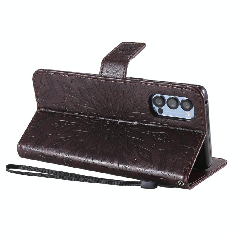 Για OPPO Reno4 Pro 5G Sun ανάγλυφο μοτίβο οριζόντια Flip δερμάτινη θήκη με υποδοχή κάρτας & κάτοχος & πορτοφόλι & Lanyard (Καφέ)