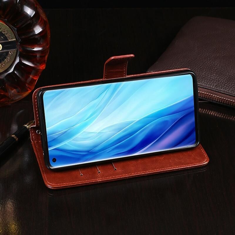 Θήκη δέρματος οριζόντιας αναδίπλωσης με υφή Crazy Horse για OPPO Reno4 Pro idewei με βάση & υποδοχές καρτών & πορτοφόλι (Μαύρο) (idewei)