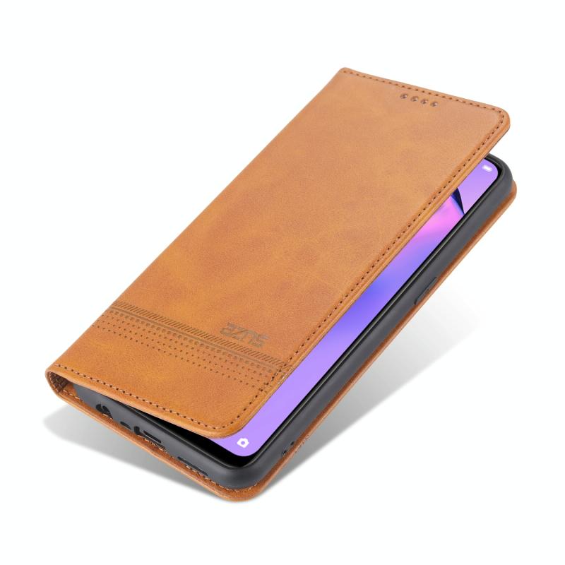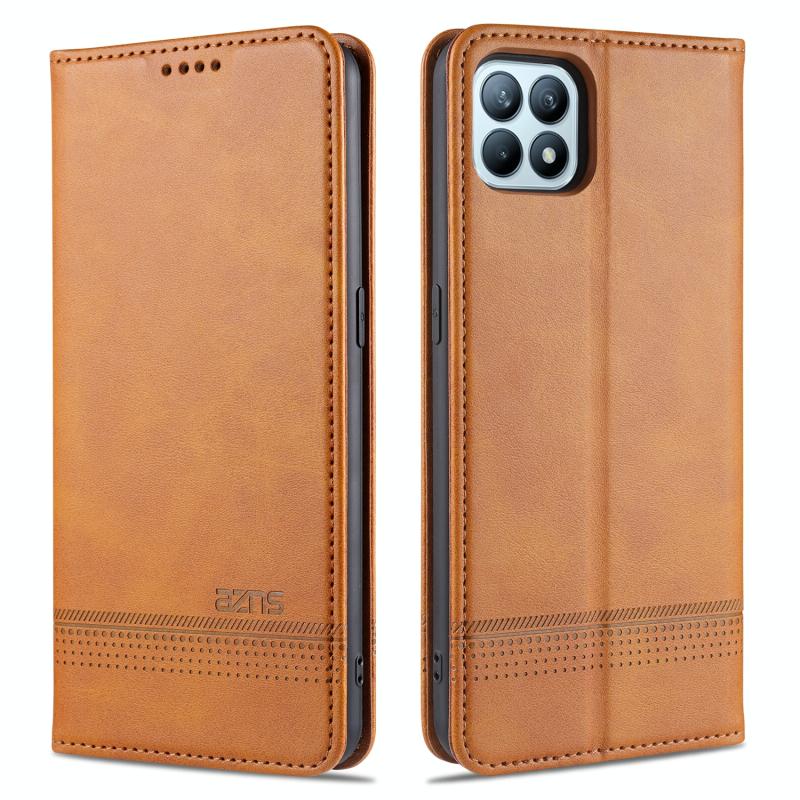 For OPPO Reno4 SE AZNS Magnetic Calf Texture Horizontal Flip Leather Case with Card Slots & Holder & Wallet(Light Brown) (AZNS)