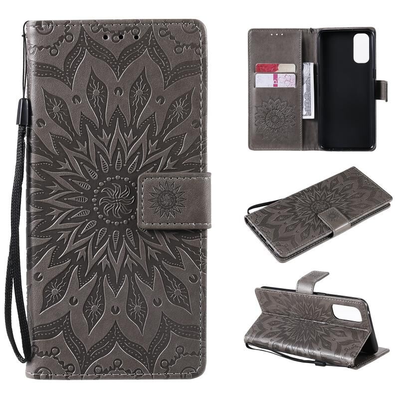 Για OPPO Reno4 Sun ανάγλυφο μοτίβο οριζόντια Flip δερμάτινη θήκη με υποδοχή κάρτας & κάτοχος & πορτοφόλι & κορδόνι (γκρι)