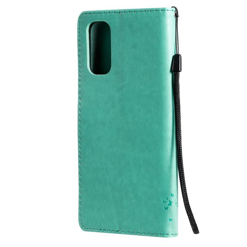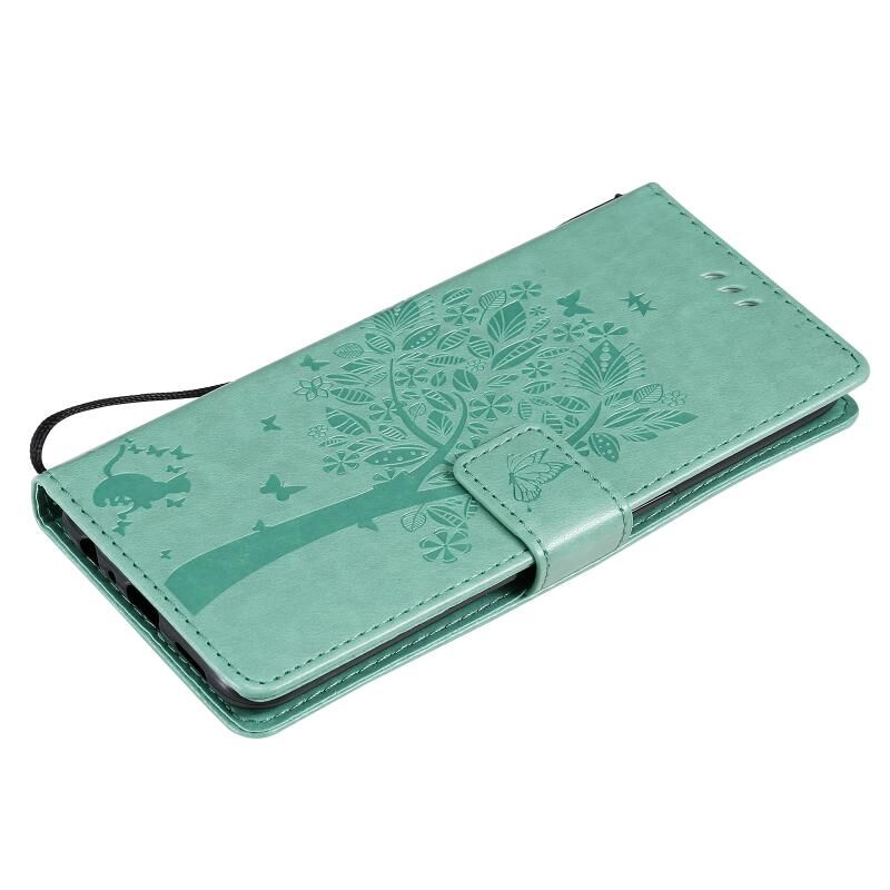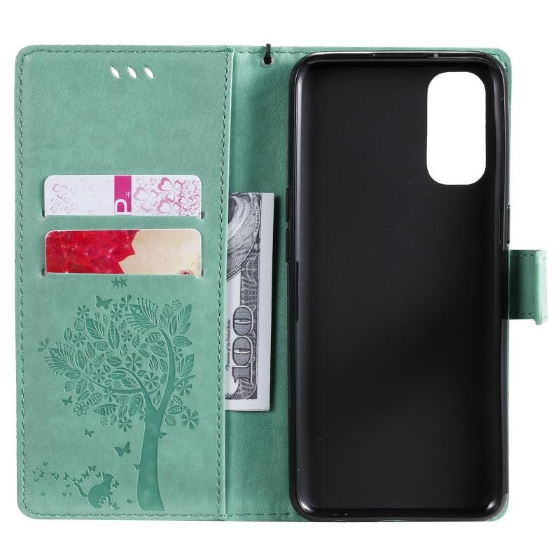 Θήκη για OPPO Reno4 με σχέδιο Δέντρου & Γάτας, με ανάγλυφο τύπωμα, οριζόντια αναδίπλωση, από δερματίνη PU με βάση στήριξης & θήκες για κάρτες & πορτοφόλι & κορδόνι (πράσινο)
