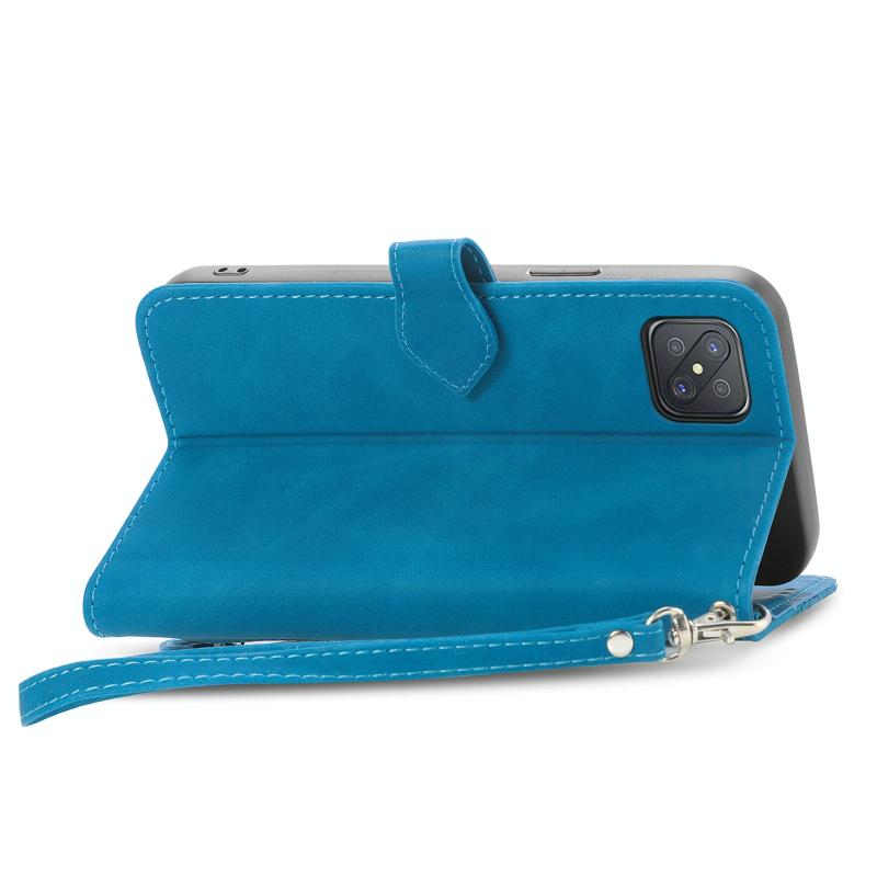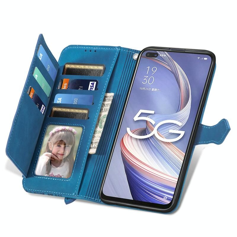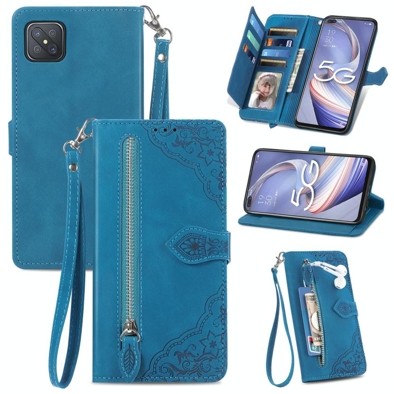 Θήκη τηλεφώνου από δέρμα με ανάγλυφα λουλούδια και φερμουάρ για OPPO Reno4 Z 5G (Μπλε)