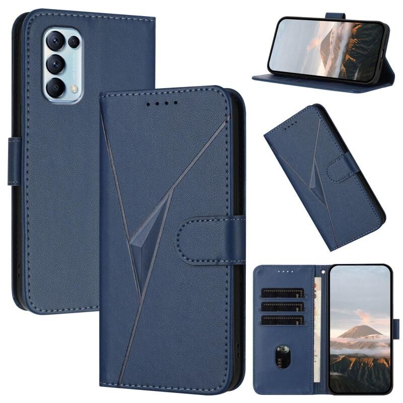 Θήκη τηλεφώνου από δέρμα με κούμπωμα τριγωνικού μοτίβου για OPPO Reno5 4G / 5G / Find X3 Lite (Βασιλικό μπλε)