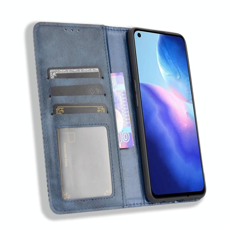 Για το OPPO Reno5 4G Μαγνητική Θήκη Δερμάτινη Οριζόντια με Αγκράφα, Υφή Crazy Horse Retro με Στήριξη, Θήκες Καρτών & Κορνίζα Φωτογραφιών (Κόκκινο)