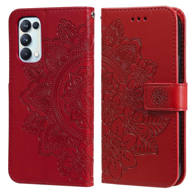 For OPPO Reno5 5G / 4G / Find X3 Lite 7-petal Flowers Embossing Pattern Horizontal Flip PU Leather Case with Holder & Card Slots & Wallet & Photo Frame(Red)