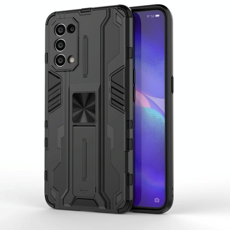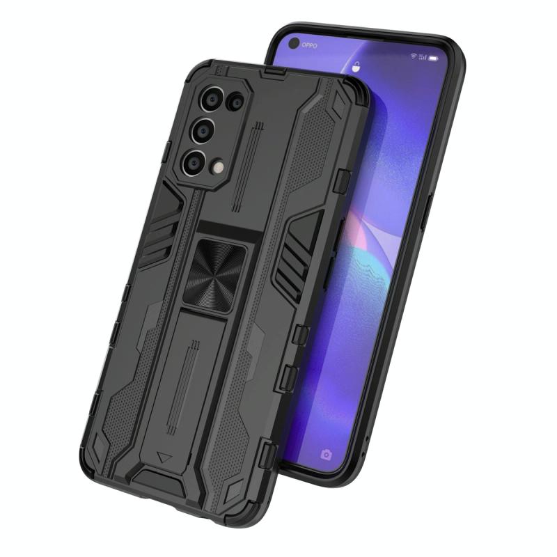 Για OPPO Reno5 5G / 4G Υπερταχύτερη θήκη PC + TPU αντικραδασμική προστατευτική με βάση στήριξης (Μαύρο)