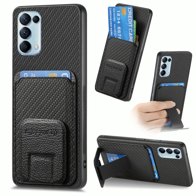 Θήκη για OPPO Reno5 5G από ανθρακονήματα με κάρτες & βάση στήριξης (Μαύρο)