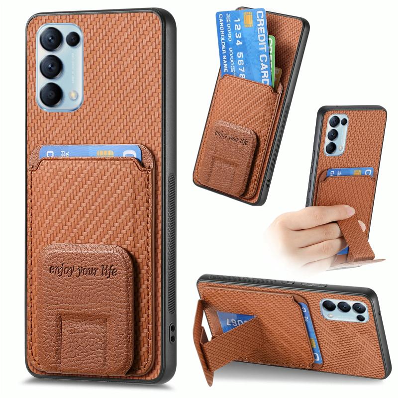 Θήκη για OPPO Reno5 5G από ανθρακονήματα με κάρτες & βάση στήριξης (Καφέ)