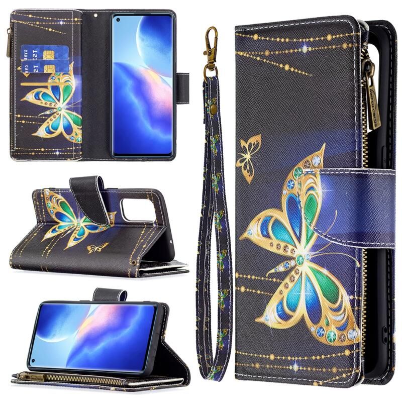 Θήκη δέρματος οριζόντιας αναδίπλωσης με φερμουάρ και σχέδιο ζωγραφικής για OPPO Reno5 5G με βάση για κάρτες και πορτοφόλι (Κόκκινο)