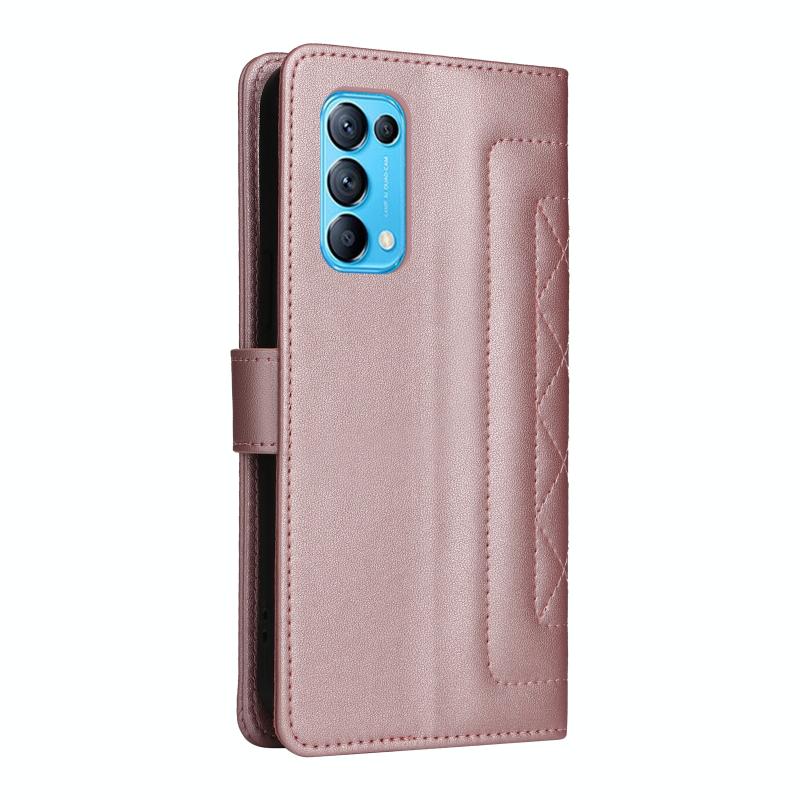 For OPPO Reno5 5G / Find X3 Lite Diamond Lattice Leather Flip Phone Case(Rose Gold)