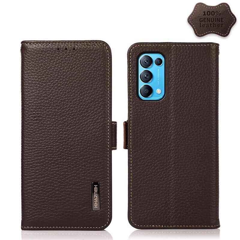 Για OPPO Reno5 5G / Find X3 Lite Θήκη KHAZNEH με μαγνητικό κλείσιμο, από γνήσιο δέρμα Litchi με προστασία RFID (Καφέ)