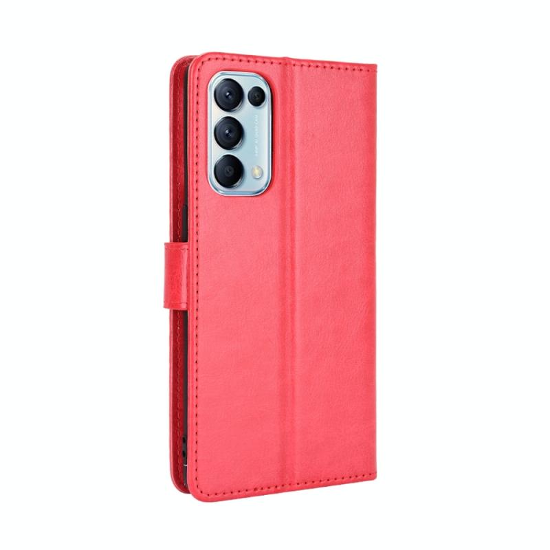For OPPO Reno5 5G Retro Crazy Horse Texture Horizontal Flip Leather Case with Holder & Card Slots & Photo Frame(Red)