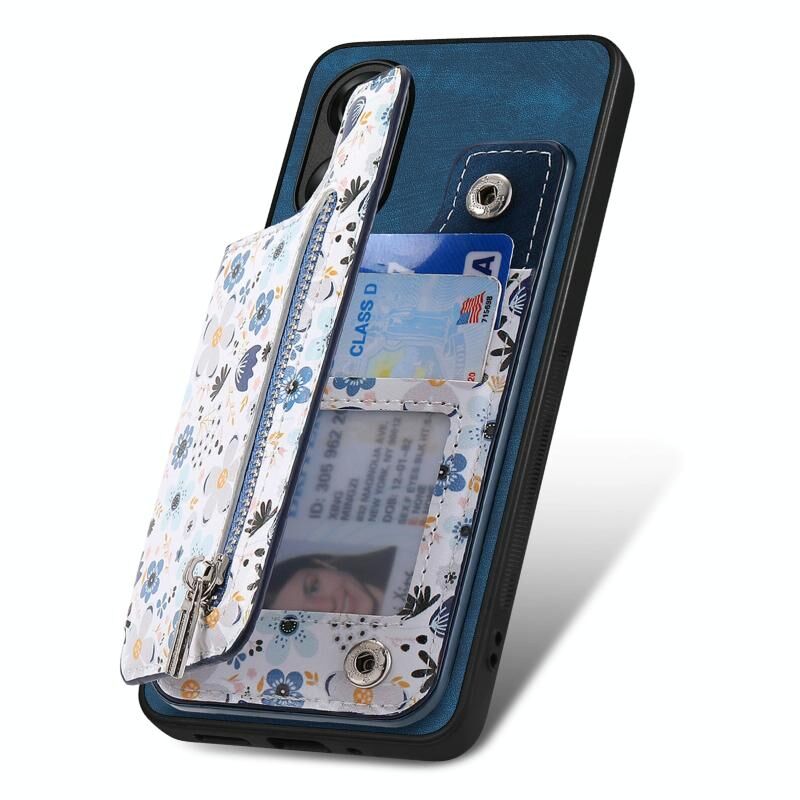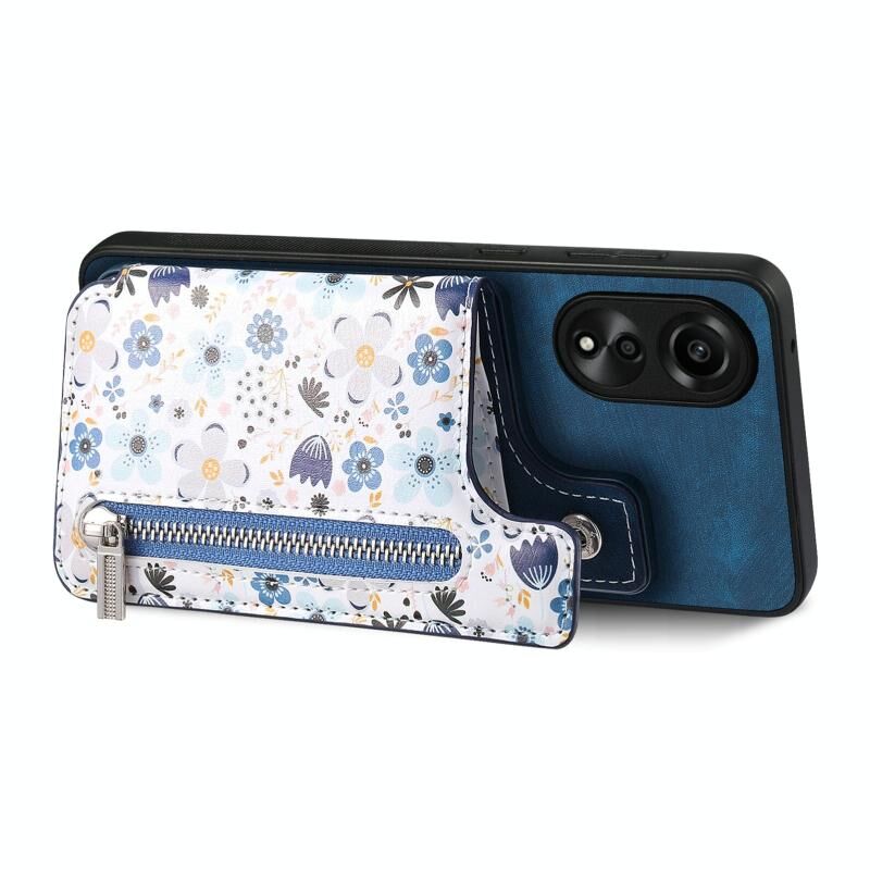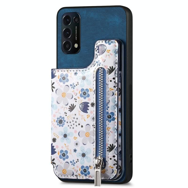 Για OPPO Reno5 5G Ρετρό ζωγραφισμένο φερμουάρ πορτοφόλι πίσω τηλέφωνο υπόθεση (Μπλε)