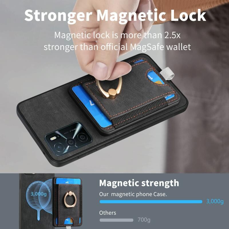 5. Το δερμάτινο πορτοφόλι διαθέτει ισχυρούς ενσωματωμένους μαγνήτες που του επιτρέπουν να κουμπώνει αβίαστα στη θέση του στο πίσω μέρος του τηλεφώνου σας, εύκολο στη χρήση και την αφαίρεση.
