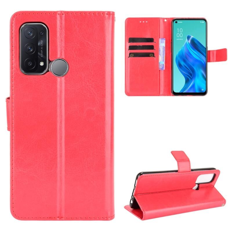 Για OPPO Reno5 Ένα τρελό άλογο Υφή οριζόντια Flip δερμάτινη θήκη με θήκη & υποδοχές για κάρτες & κορδόνι (Κόκκινο)