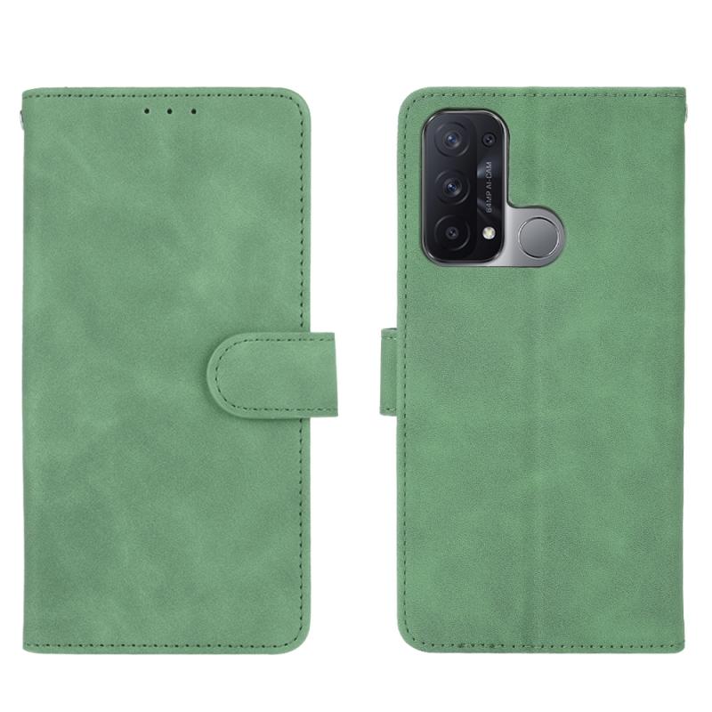 For OPPO Reno5 A(Japan) Solid Color Skin Feel Magnetic Buckle Horizontal Flip Calf Texture PU Leather Case with Holder & Card Slots & Wallet(Green)