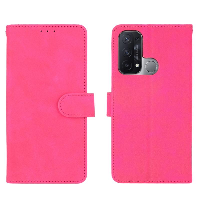 For OPPO Reno5 A(Japan) Solid Color Skin Feel Magnetic Buckle Horizontal Flip Calf Texture PU Leather Case with Holder & Card Slots & Wallet(Rose Red)