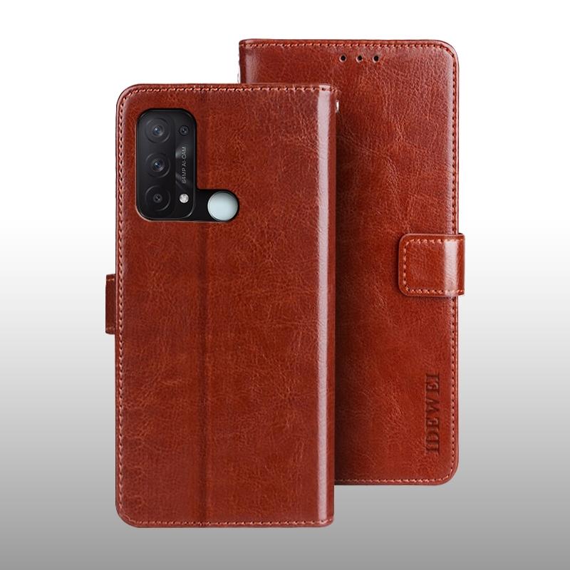 Θήκη δέρματος οριζόντιας αναδίπλωσης με υφή Crazy Horse idewei για OPPO Reno5 A Ιαπωνική Έκδοση με βάση στήριξης & υποδοχές καρτών & πορτοφόλι (Λευκό) (idewei)