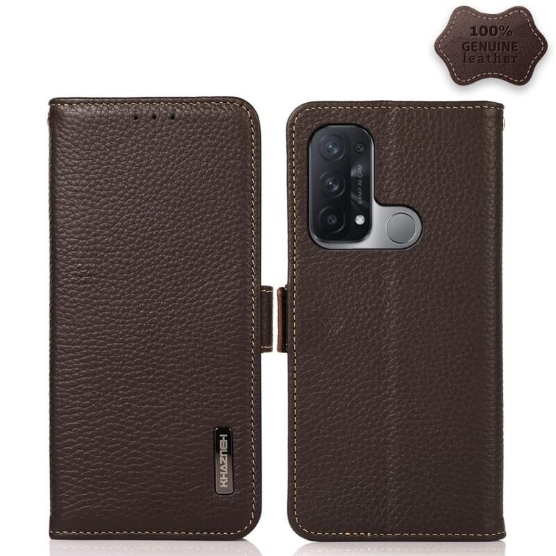 Θήκη RFID από γνήσιο δέρμα Litchi με μαγνητικό κλείσιμο στο πλάι KHAZNEH για OPPO Reno5 A JP Version (Μαύρο)