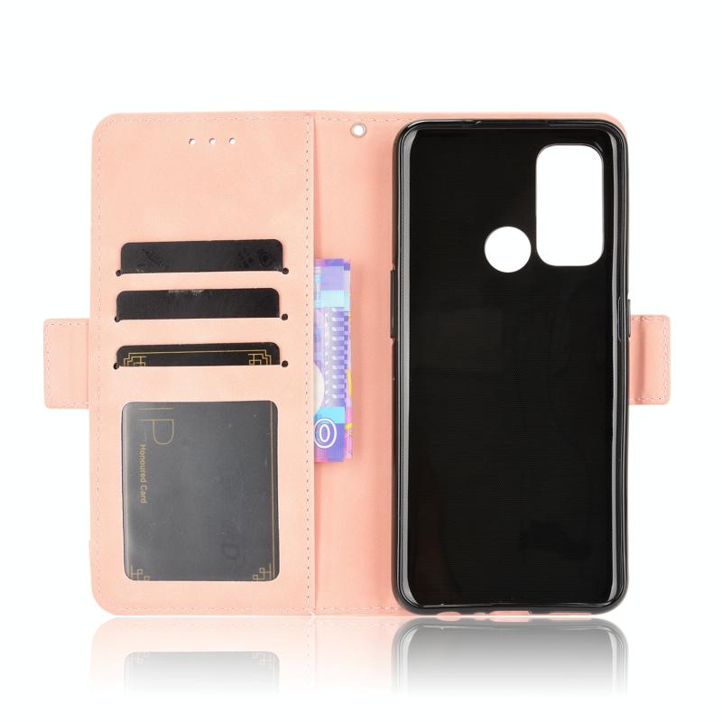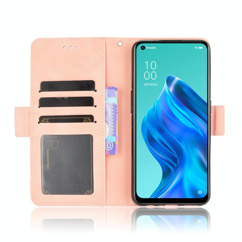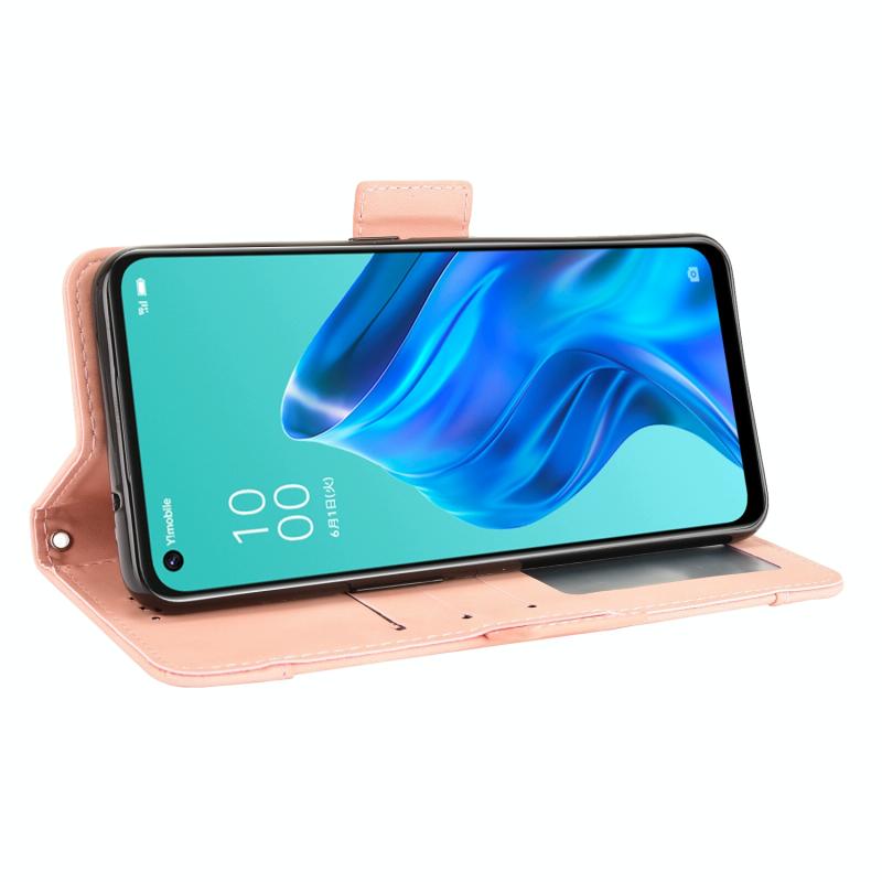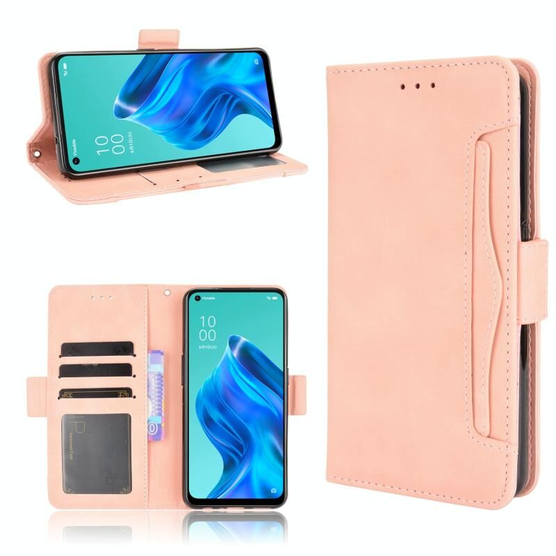 Θήκη δέρματος οριζόντιας αναδίπλωσης για OPPO Reno5 A με υφή δέρματος μοσχαριού, με βάση στήριξης & υποδοχές καρτών & κορνίζα φωτογραφιών (ρόζ)