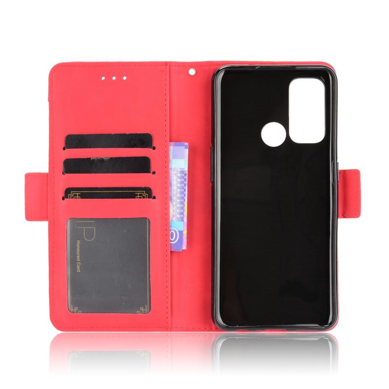 Θήκη δέρματος οριζόντιας αναδίπλωσης για OPPO Reno5 A με υφή δέρματος μοσχαριού, με βάση στήριξης & υποδοχές καρτών & κορνίζα φωτογραφιών (Κόκκινο)