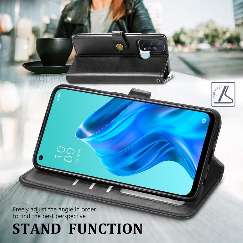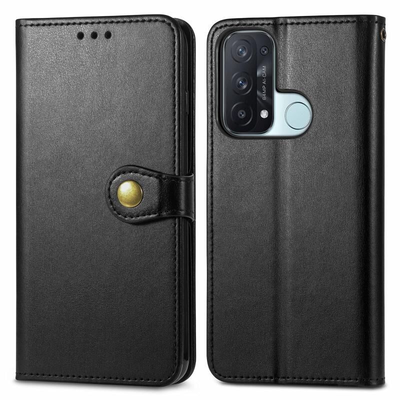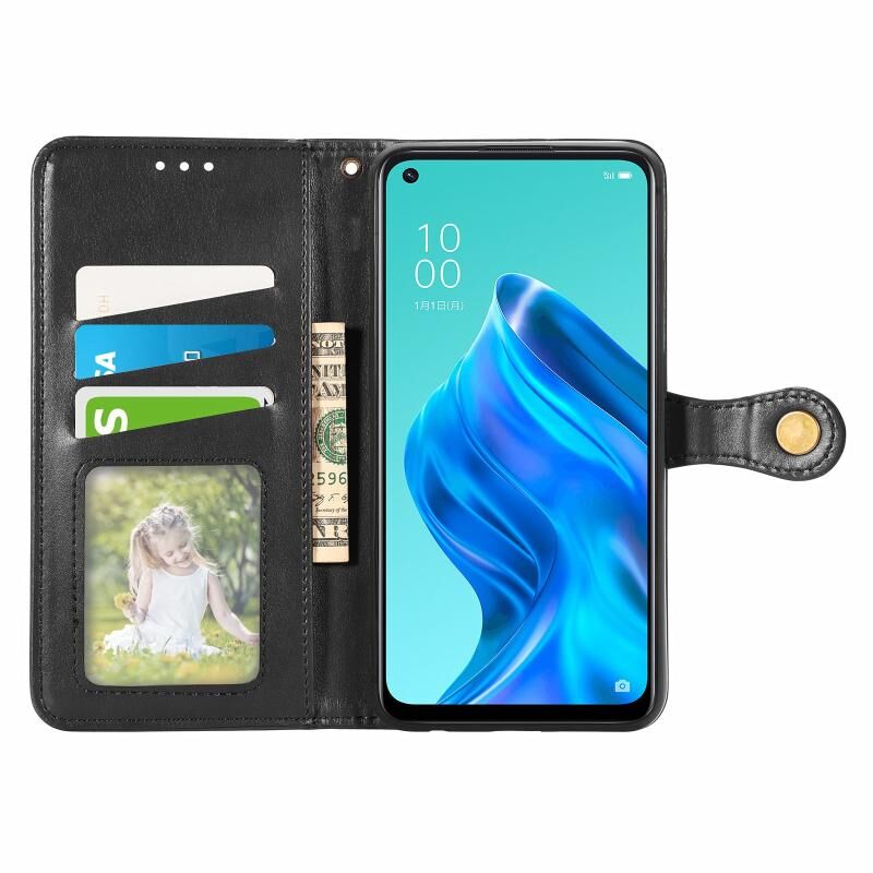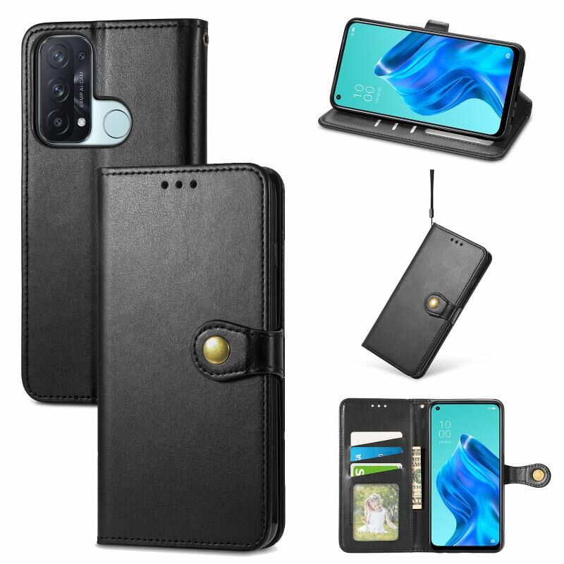 Για OPPO Reno5 A Solid Color δέρμα αγκράφα τηλέφωνο υπόθεση με κορδόνι & πλαίσιο φωτογραφιών & υποδοχή κάρτας & πορτοφόλι & λειτουργία Stand (Μαύρο)