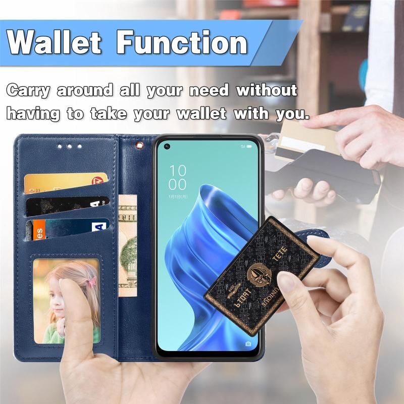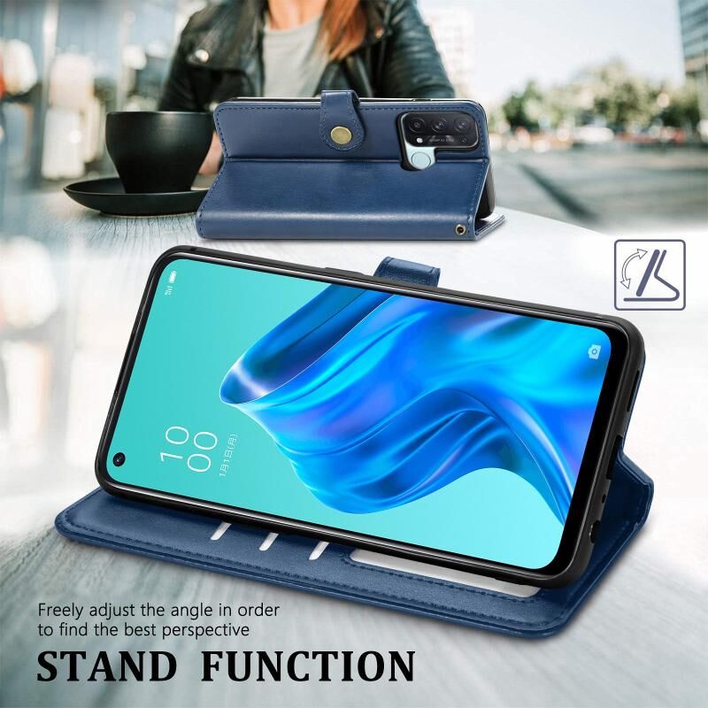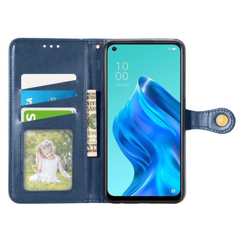 Για OPPO Reno5 A Αμιγές χρώμα δερμάτινη θήκη τηλεφώνου πόρπη με κορδόνι & πλαίσιο φωτογραφιών & υποδοχή κάρτας & πορτοφόλι & λειτουργία Stand (μπλε)