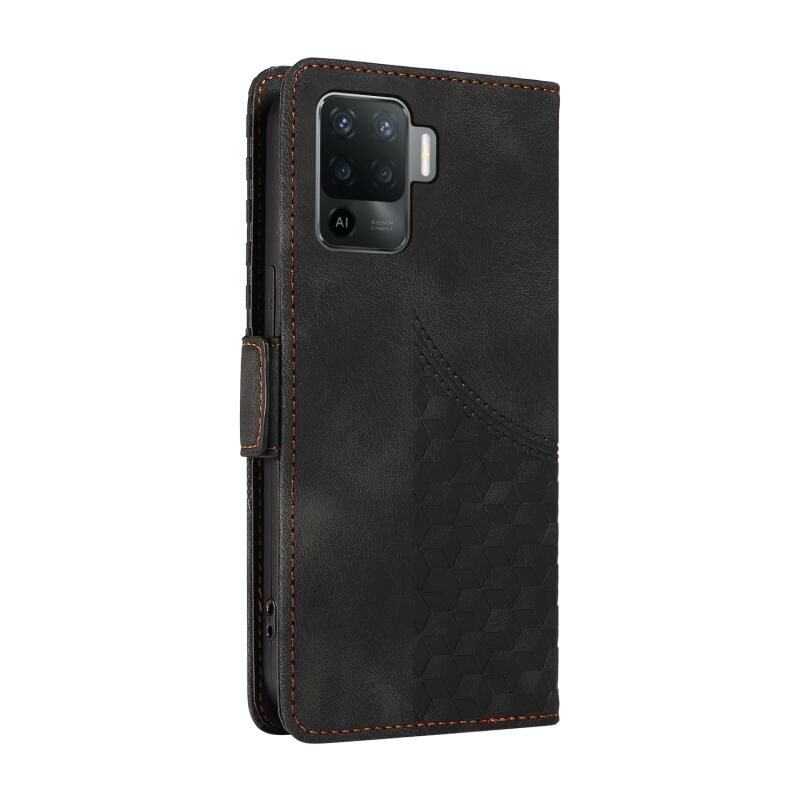Για OPPO Reno5 F / Lite ανάγλυφο Rhombus Starry δερμάτινη θήκη τηλεφώνου (μαύρο)