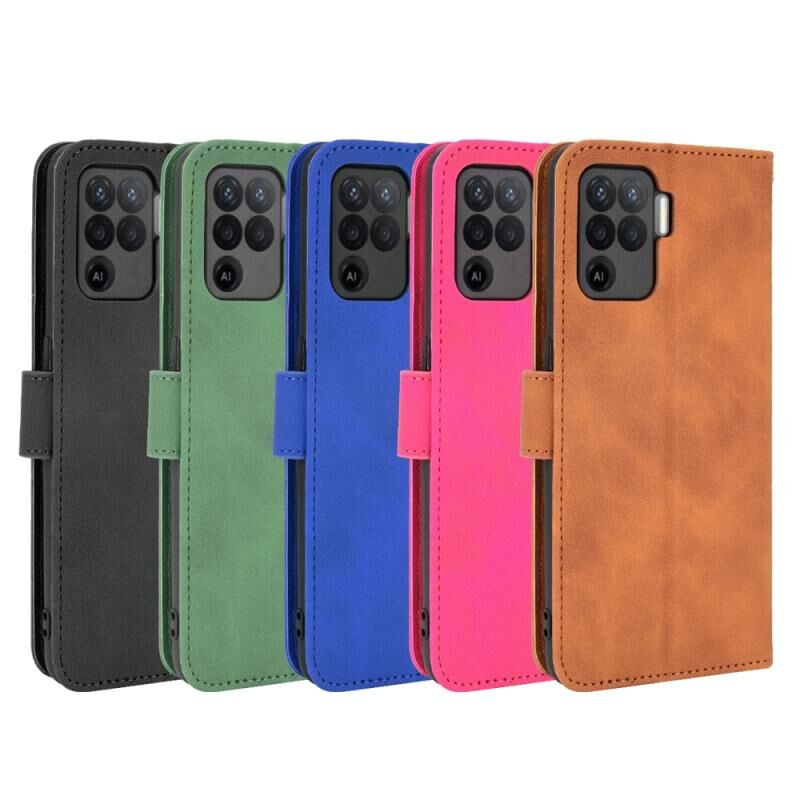 Για Oppo Reno5 F Solid Color Skin Feel μαγνητική πόρπη οριζόντια Flip μοσχάρι υφή PU δέρμα υπόθεση με κάτοχο & υποδοχές καρτών & πορτοφόλι (μπλε)