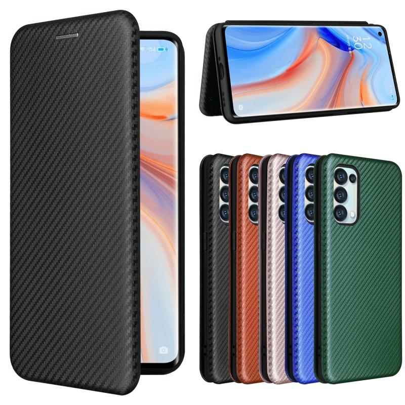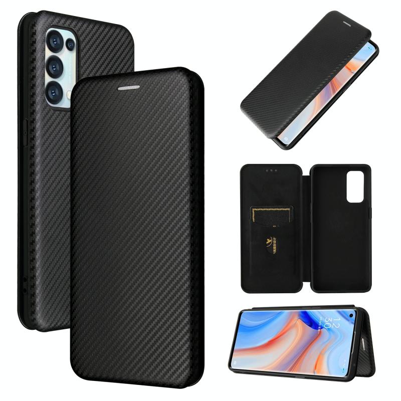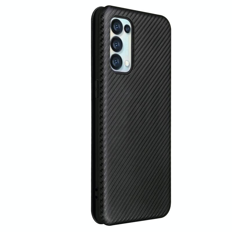 Θήκη για OPPO Reno5 Pro 5G με υφή ανθρακονημάτων, οριζόντια αναδιπλούμενη από TPU + PC + Δερματίνη PU με θήκη για κάρτες (Καφέ)