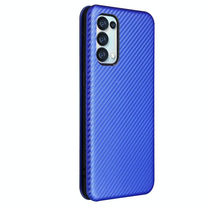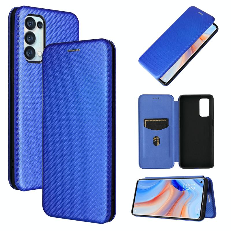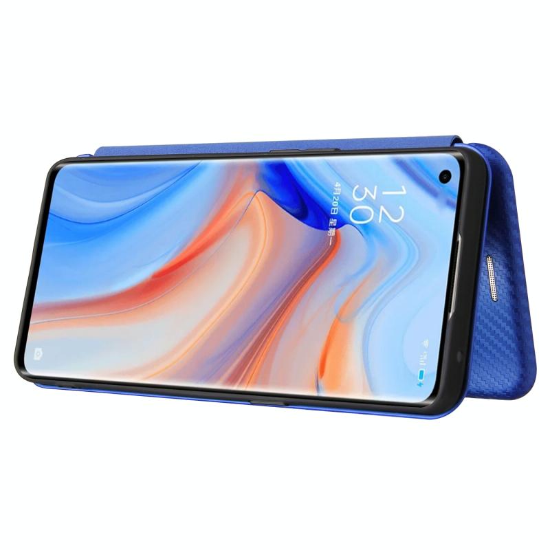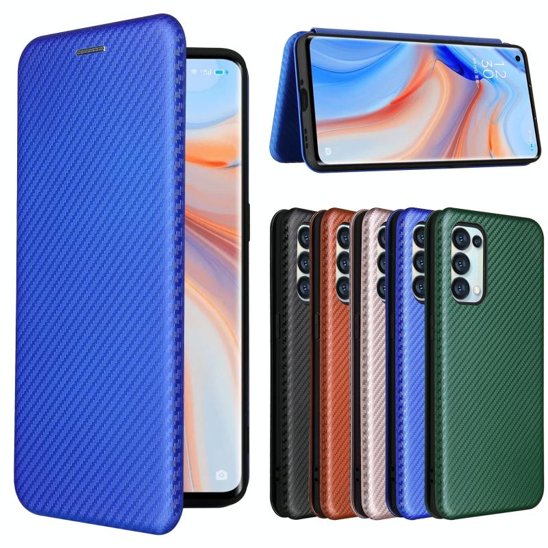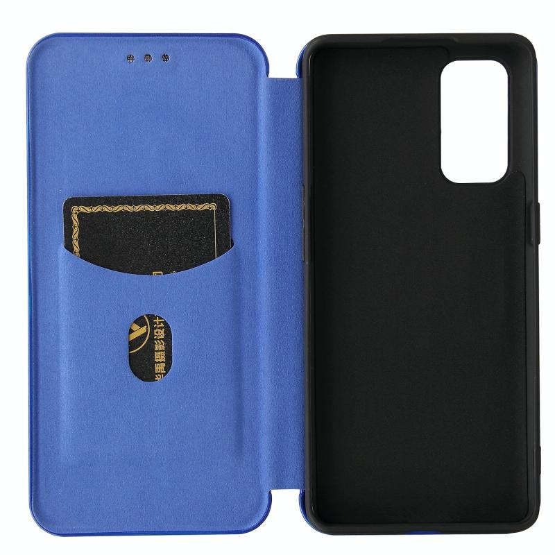 Θήκη για OPPO Reno5 Pro 5G με υφή ανθρακονημάτων, οριζόντια αναδιπλούμενη από TPU + PC + Δερματίνη PU με θήκη για κάρτες (Καφέ)