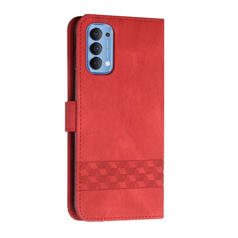 Θήκη τηλεφώνου από δέρμα με αναδιπλούμενο καπάκι για OPPO Reno5 Pro 5G, με υφή κυβικού δέρματος (Σκούρο Καφέ)