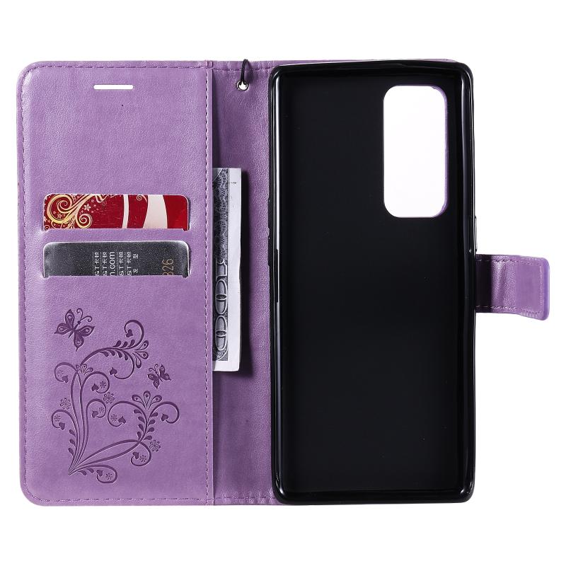 Θήκη για OPPO Reno5 Pro+ 5G / Find X3 Neo με εκτύπωση πεταλούδας, οριζόντια αναδίπλωση, από δερματίνη PU με βάση στήριξης & θήκες καρτών & πορτοφόλι & κορδόνι (Χρυσό Ρόδι)