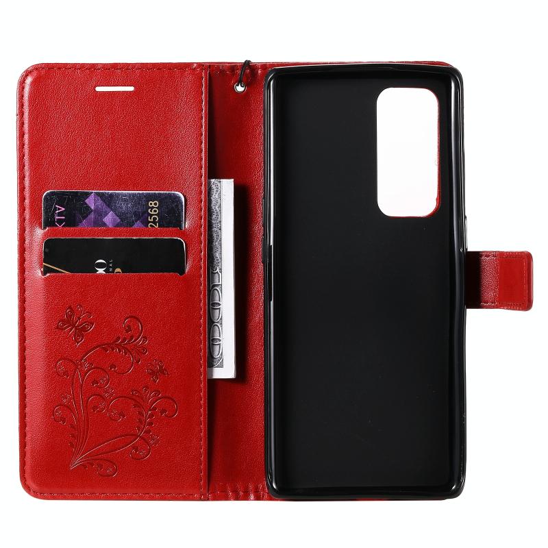 Θήκη για OPPO Reno5 Pro+ 5G / Find X3 Neo με εκτύπωση πεταλούδας, οριζόντια αναδίπλωση, από δερματίνη PU με βάση στήριξης & θήκες καρτών & πορτοφόλι & κορδόνι (Χρυσό Ρόδι)