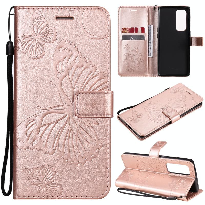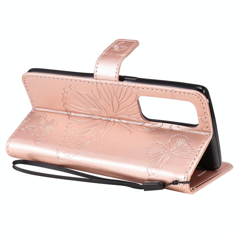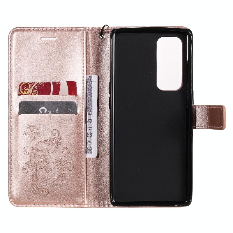 Θήκη για OPPO Reno5 Pro+ 5G / Find X3 Neo με εκτύπωση πεταλούδας, οριζόντια αναδίπλωση, από δερματίνη PU με βάση στήριξης & θήκες καρτών & πορτοφόλι & κορδόνι (Χρυσό Ρόδι)