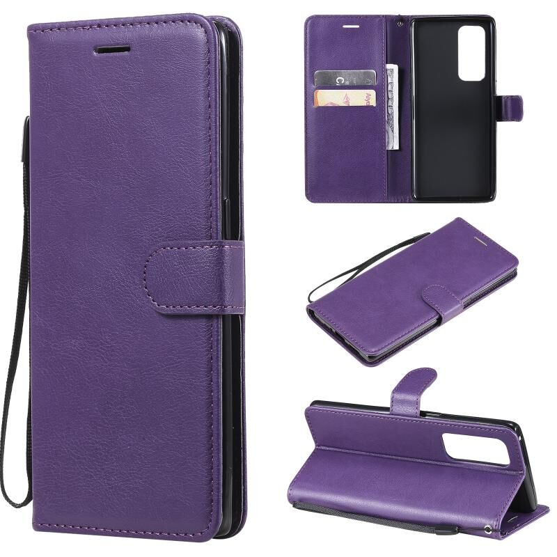 Για OPPO Reno5 Pro+ 5G / Find X3 Neo Αμιγές χρώμα οριζόντια Flip προστατευτική δερμάτινη θήκη με θήκη & υποδοχές για κάρτες & πορτοφόλι & κορνίζα φωτογραφιών & κορδόνι (μωβ)