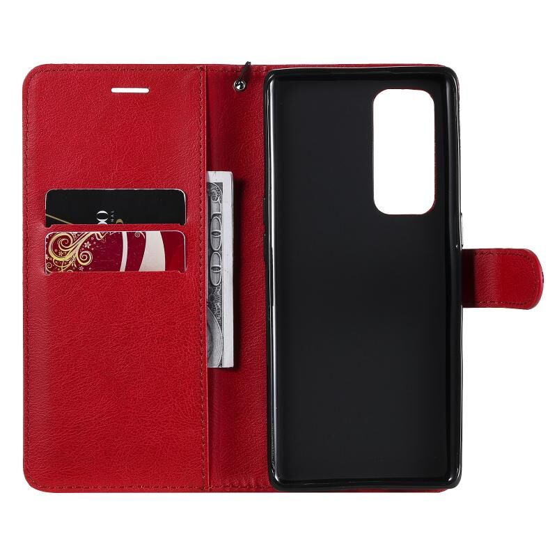 Για OPPO Reno5 Pro+ 5G / Find X3 Neo Αμιγές χρώμα οριζόντια Flip προστατευτική δερμάτινη θήκη με θήκη & υποδοχές καρτών & πορτοφόλι & κορνίζα φωτογραφιών & κορδόνι (κόκκινο)