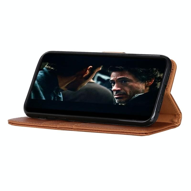 Θήκη δέρματος οριζόντιας αναδίπλωσης για OPPO Reno5 Pro 5G KHAZNEH με υφή δέρματος μοσχαριού, με βάση & υποδοχές καρτών & πορτοφόλι (Καφέ)