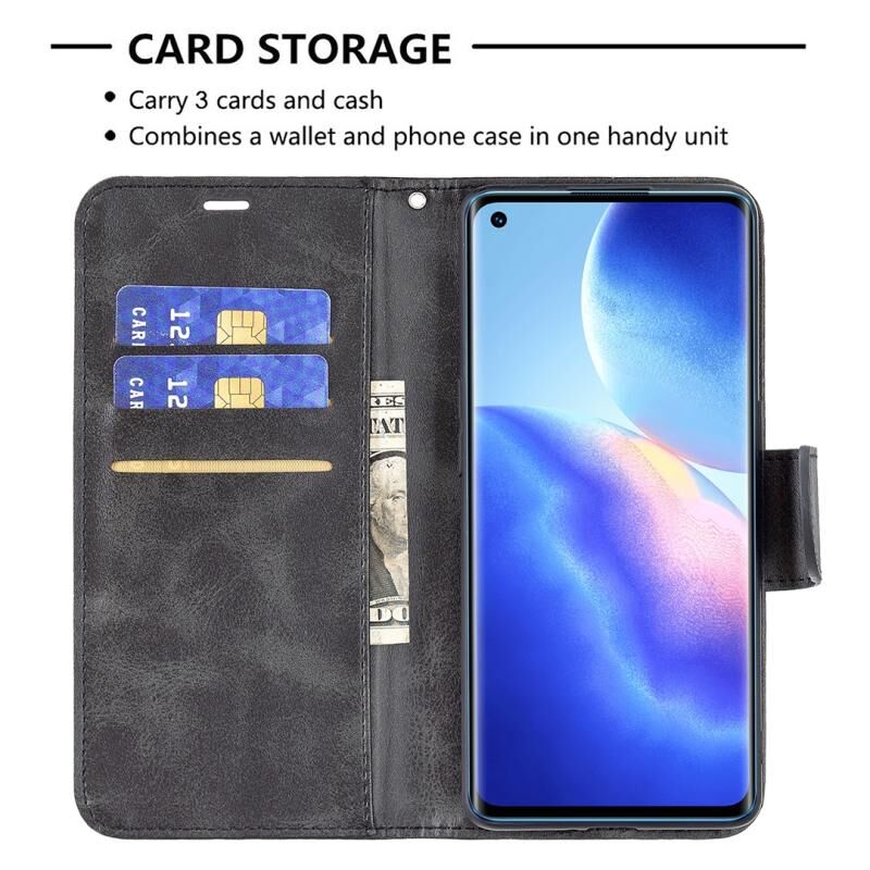 Θήκη για OPPO Reno5 Pro 5G με υφή retro δέρματος αρνιού, απλό χρώμα, οριζόντια αναδίπλωση από δερματίνη PU με βάση στήριξης & υποδοχές καρτών & πορτοφόλι & κορδόνι (Μπλε)
